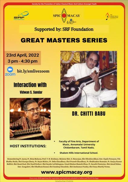 SPIC MACAY Great Master Series : Featuring Late Dr. Chitti Babu in an interaction with his sishya Vidwan S Sundar